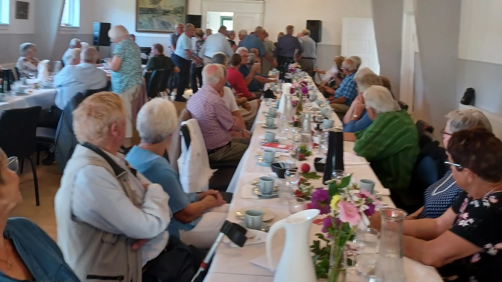 Der var rigtig god stemning til høstfesten. Vi fik wienerschnitzel og det smagte rigtigt godt. Derefter kaffe med frugttærte. Rigtigt lækkert.