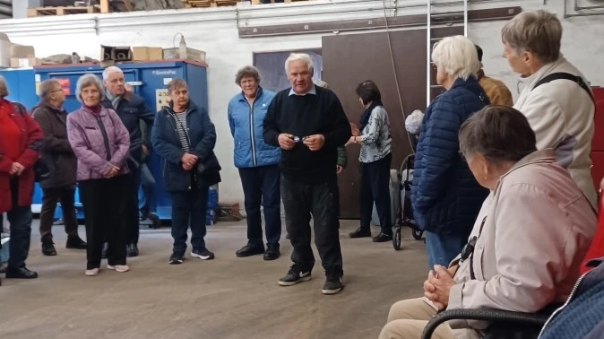 Så besøgte vi Ruth og Kaj. Gislinge Kartoffelpakkeri. Her fortalte Kaj om personlige forhold og den hårde tid, da pengene var små. Men det er efterhånden blevet et meget stort foretagende, som deles med sønnen.